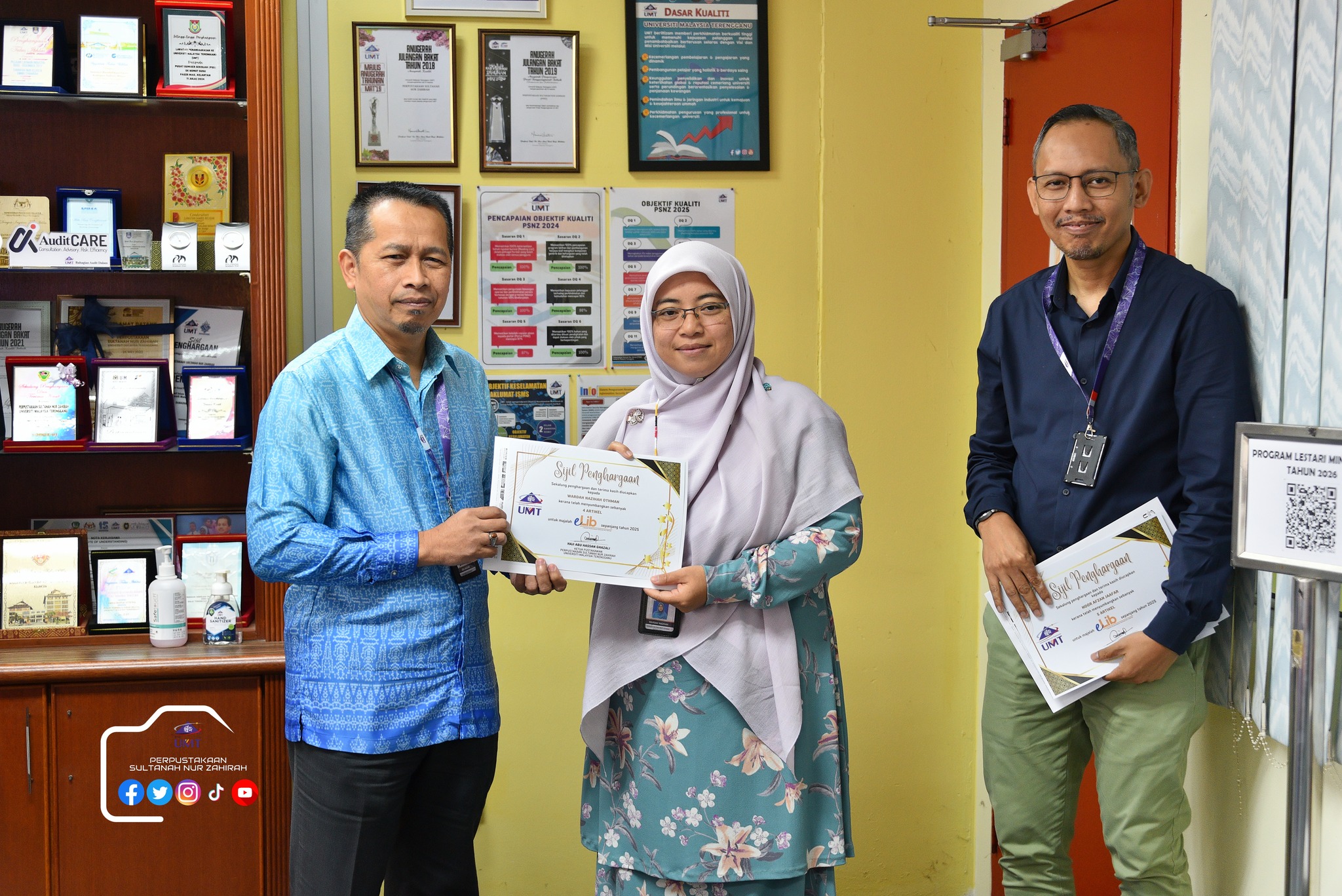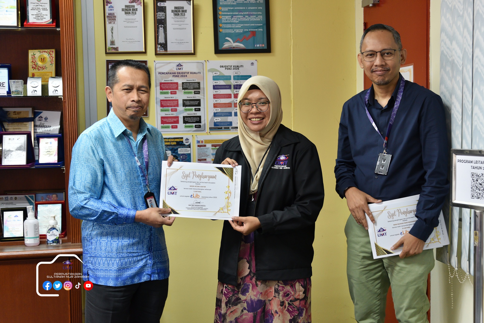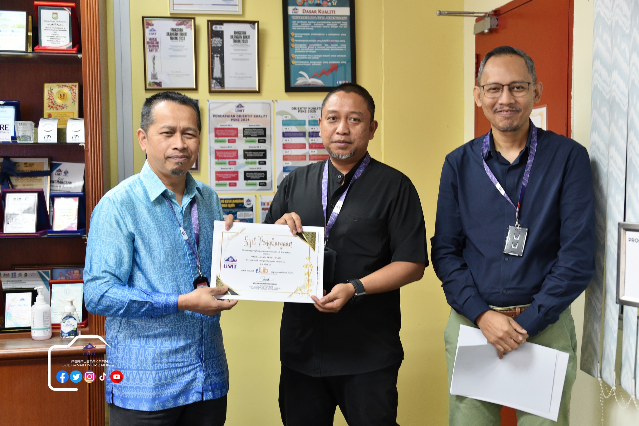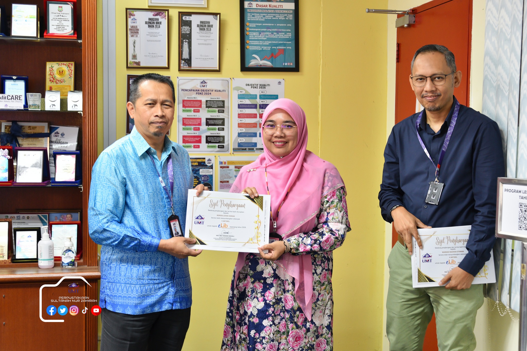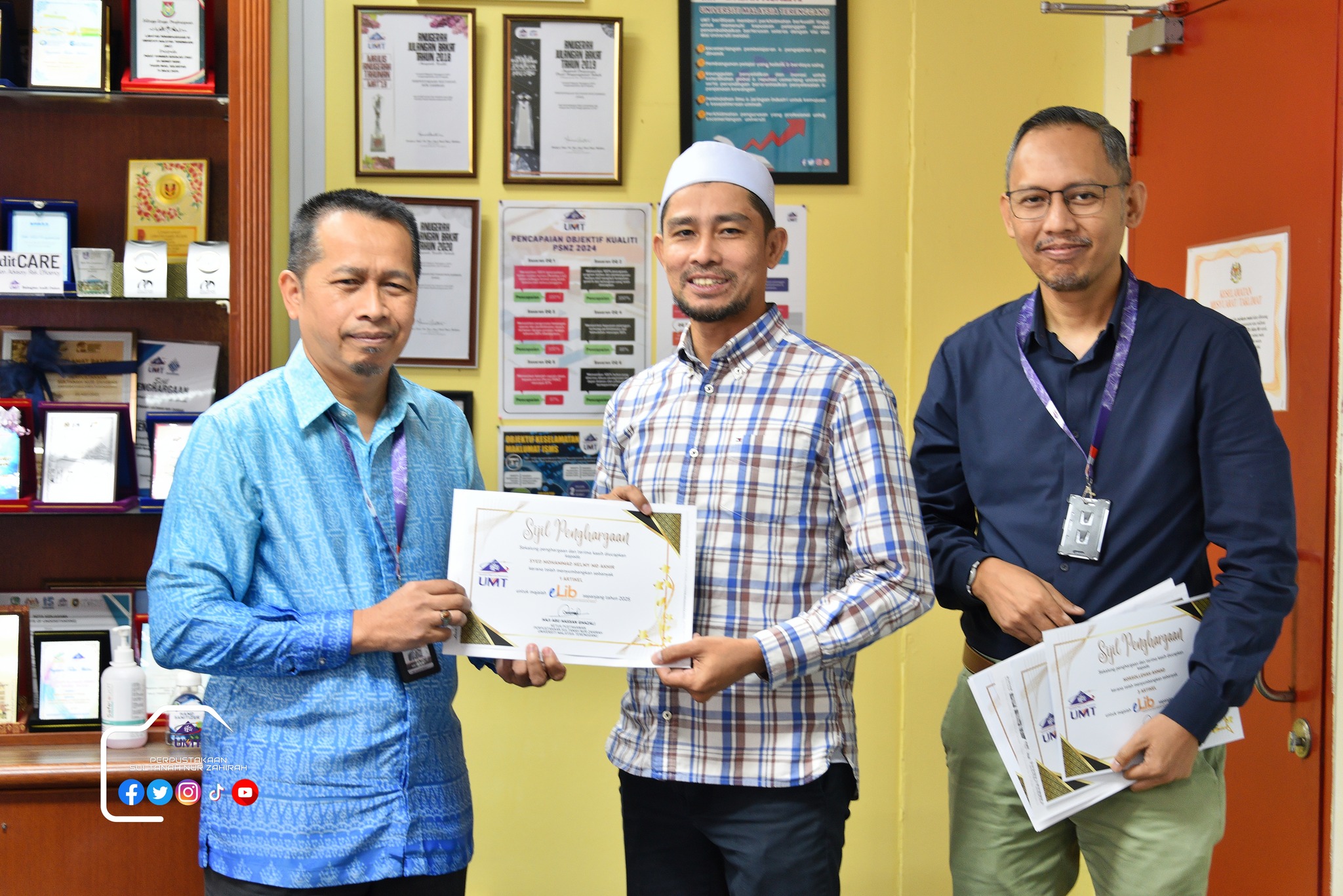 Dalam program ini juga, sesi penyerahan sijil Kecukupan Latihan 100% dan Kad Kuning serta ⁠penyerahan sijil penghargaan penyumbang artikel majalah e-lib.
