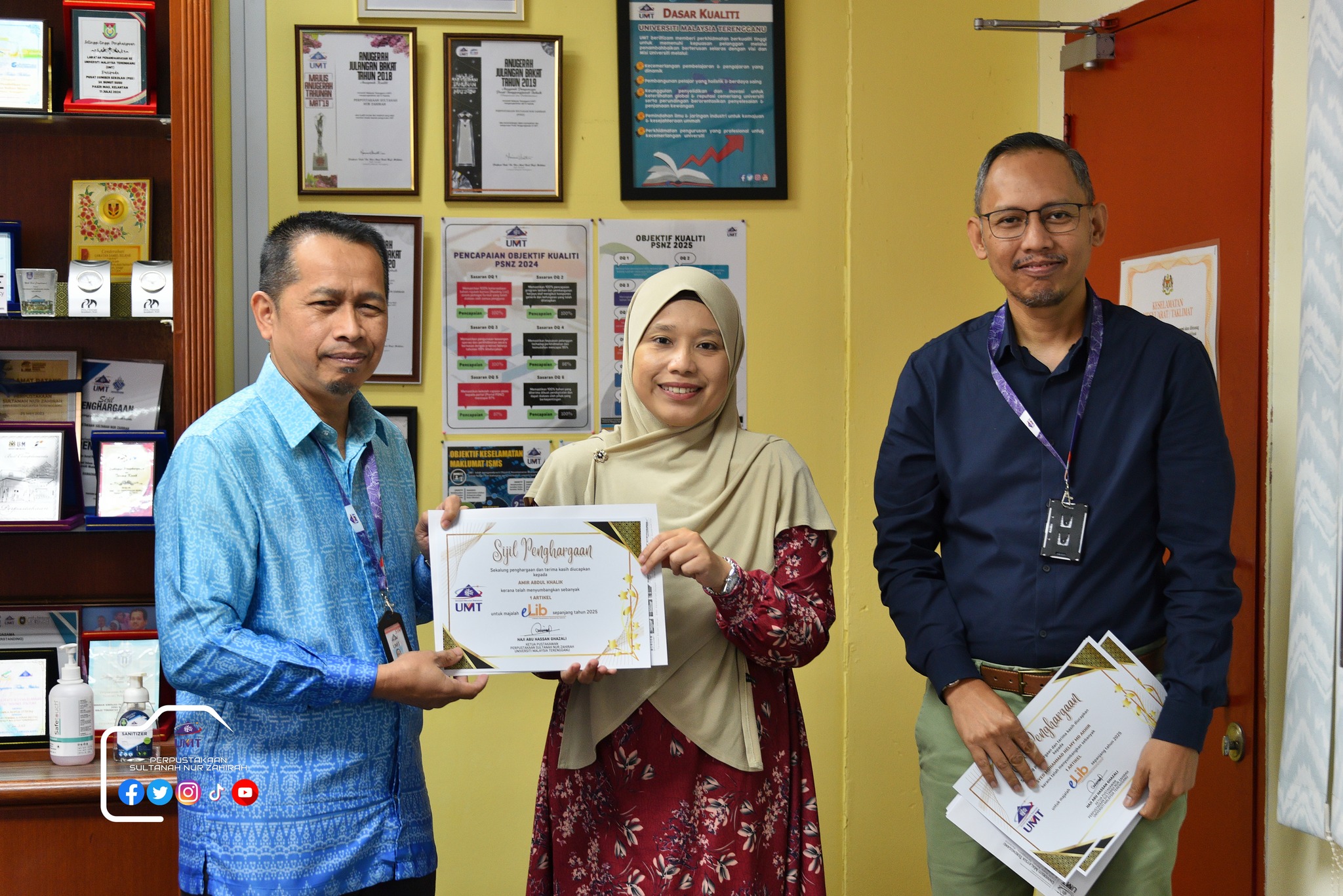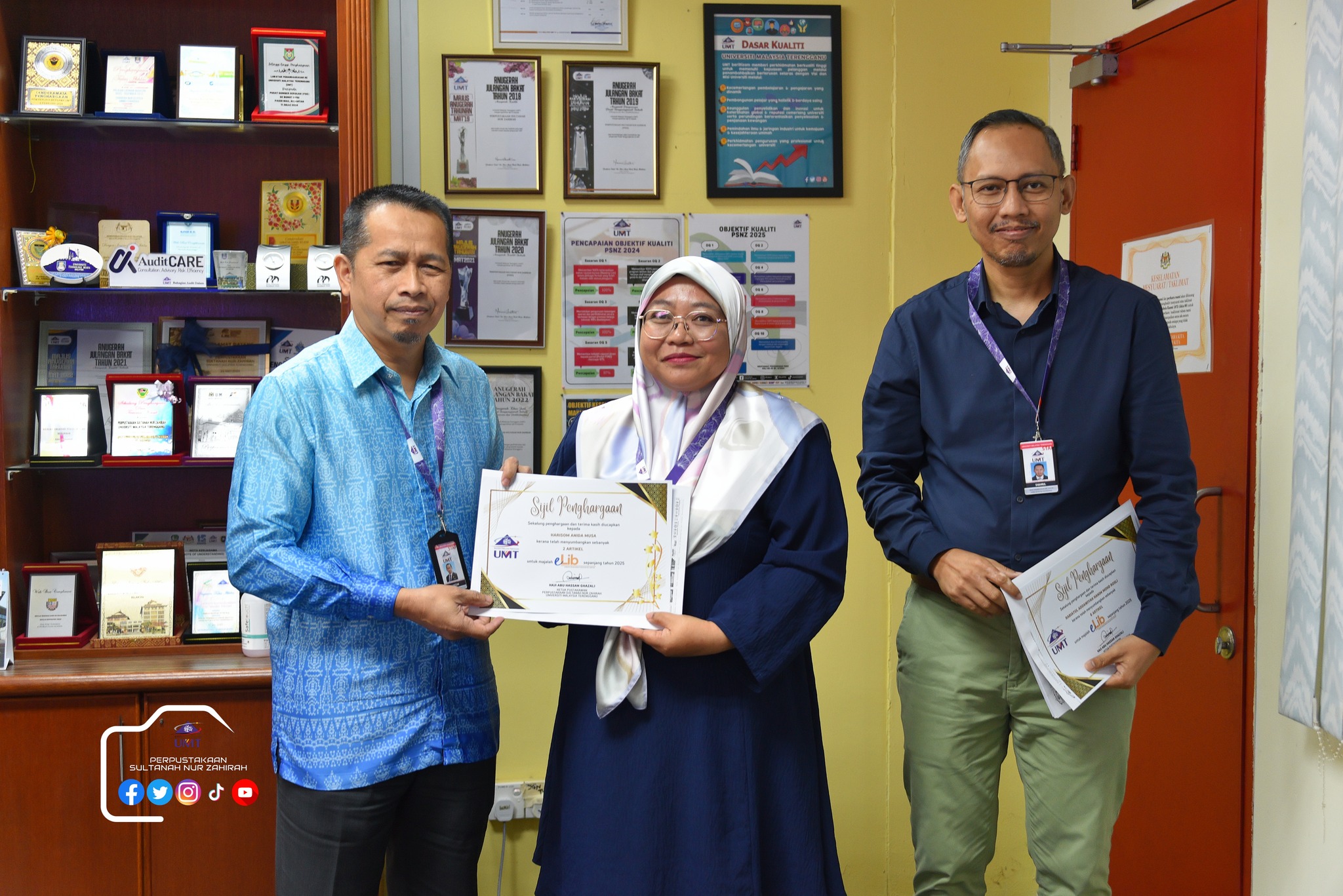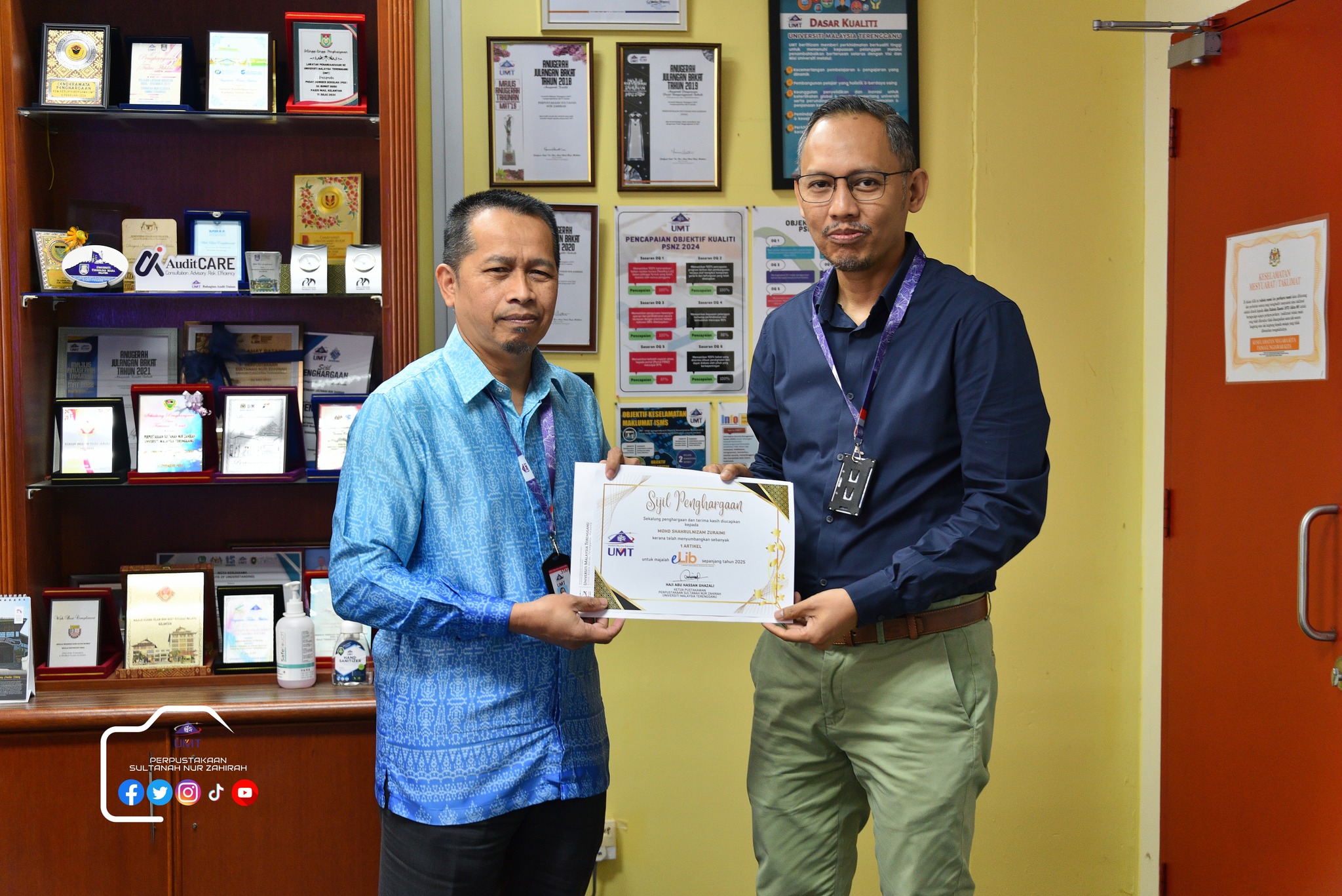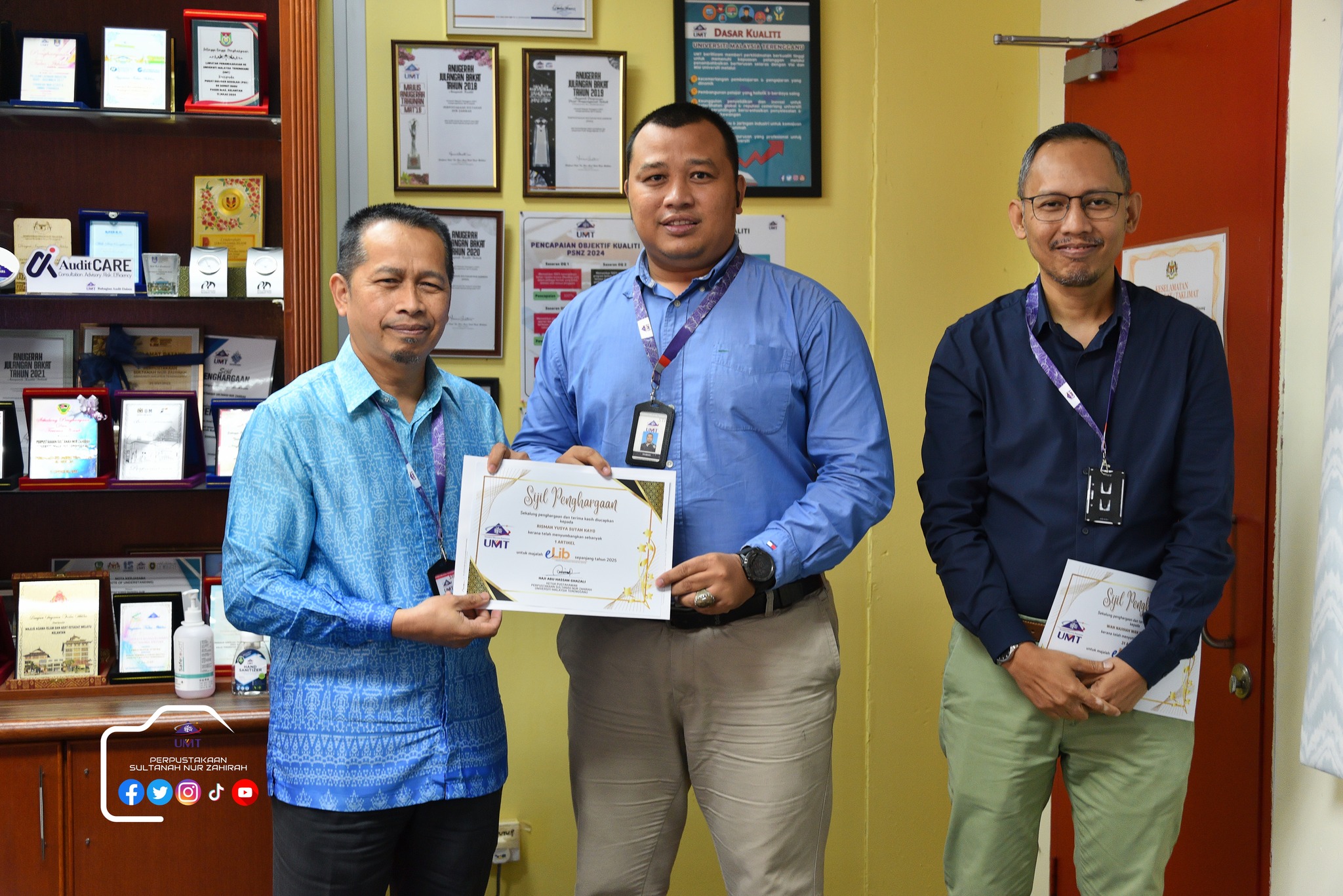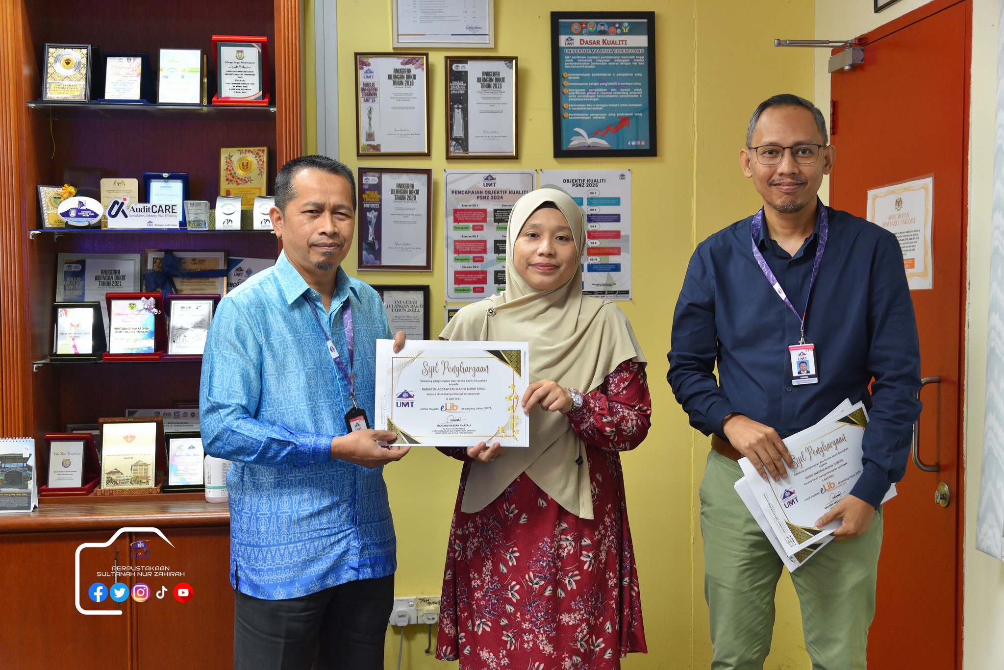 Dalam program ini juga, sesi penyerahan sijil Kecukupan Latihan 100% dan Kad Kuning serta ⁠penyerahan sijil penghargaan penyumbang artikel majalah e-lib.