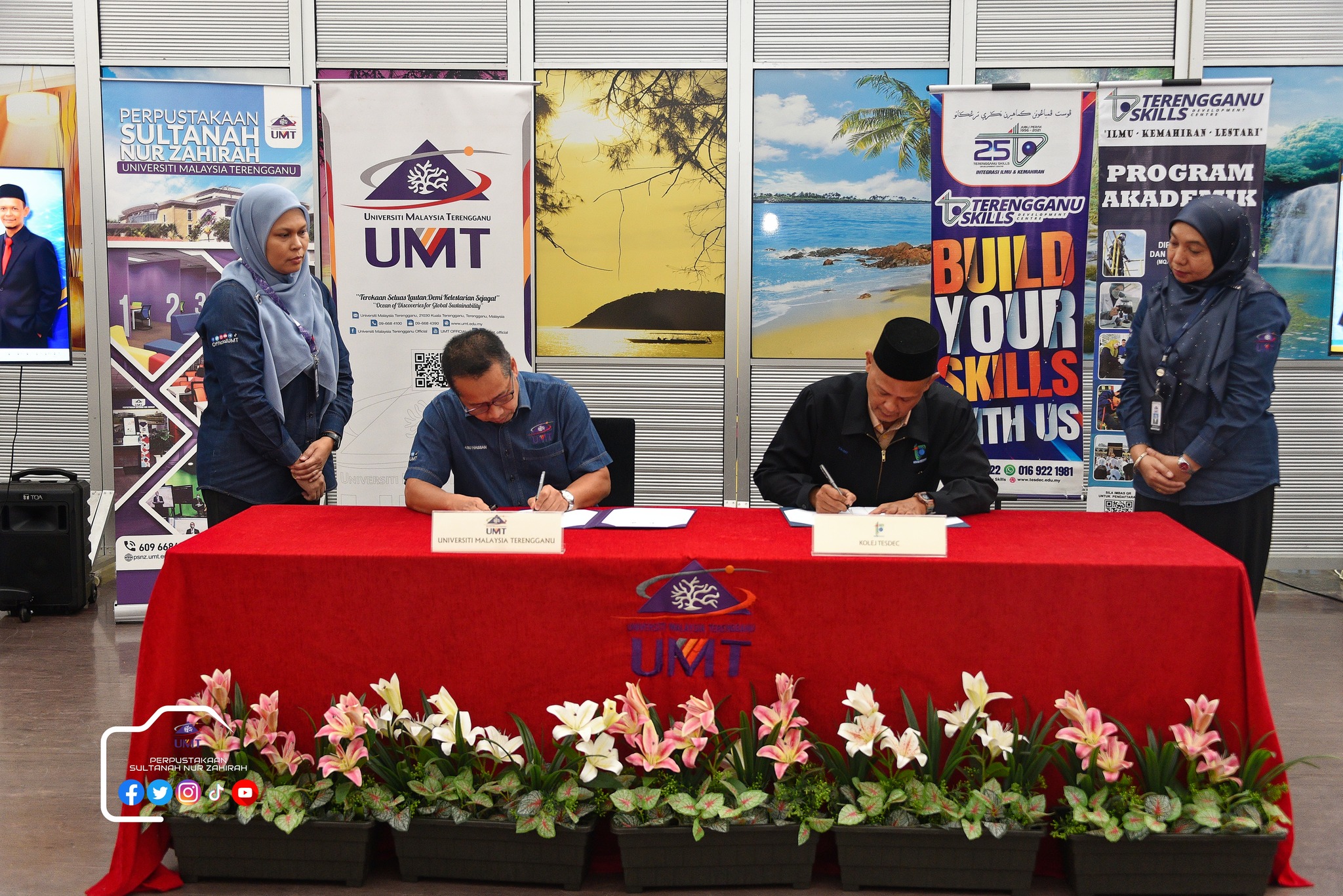 Alhamdulillah, Majlis Menandatangani Surat Niat (Letter of Intent) antara Perpustakaan Sultanah Nur Zahirah (PSNZ), Universiti Malaysia Terengganu dan Kolej TESDEC telah berjaya dilaksanakan pada 27 Januari 2026, bertempat di Aras 1, PSNZ.