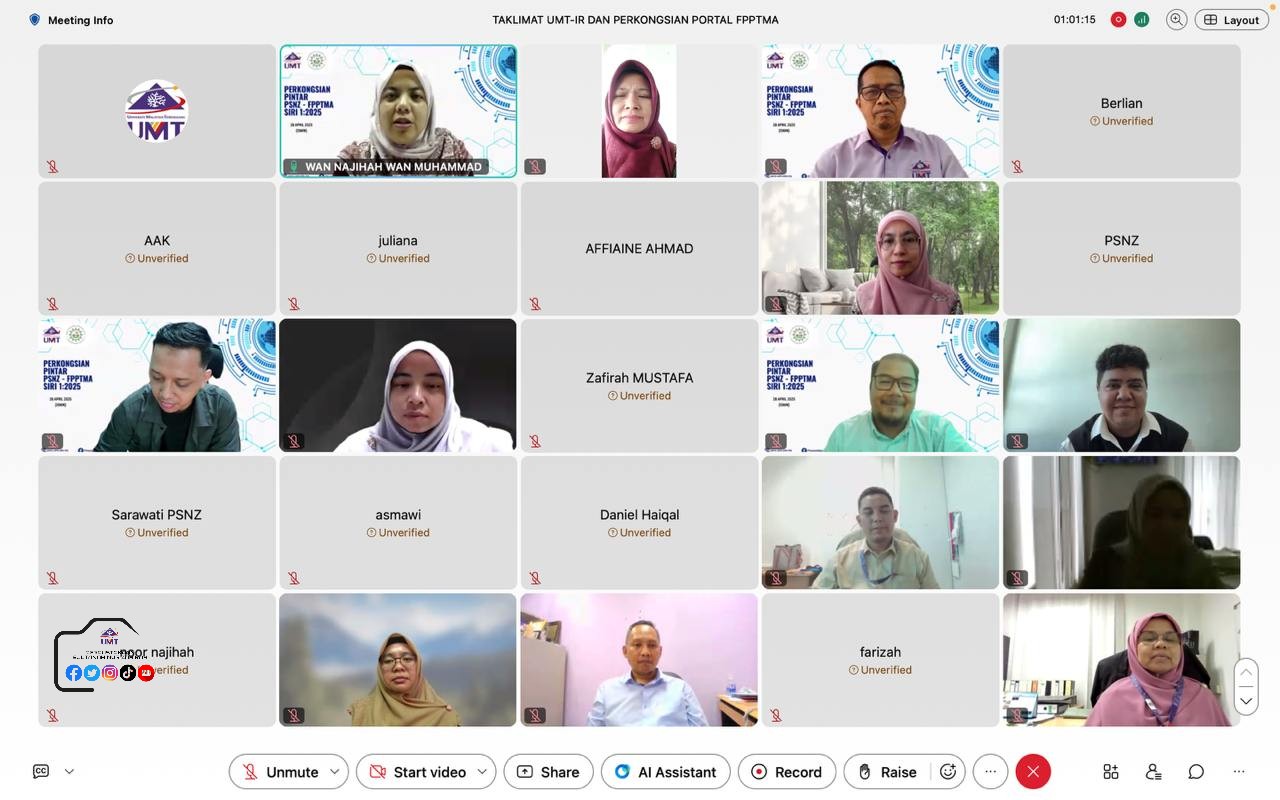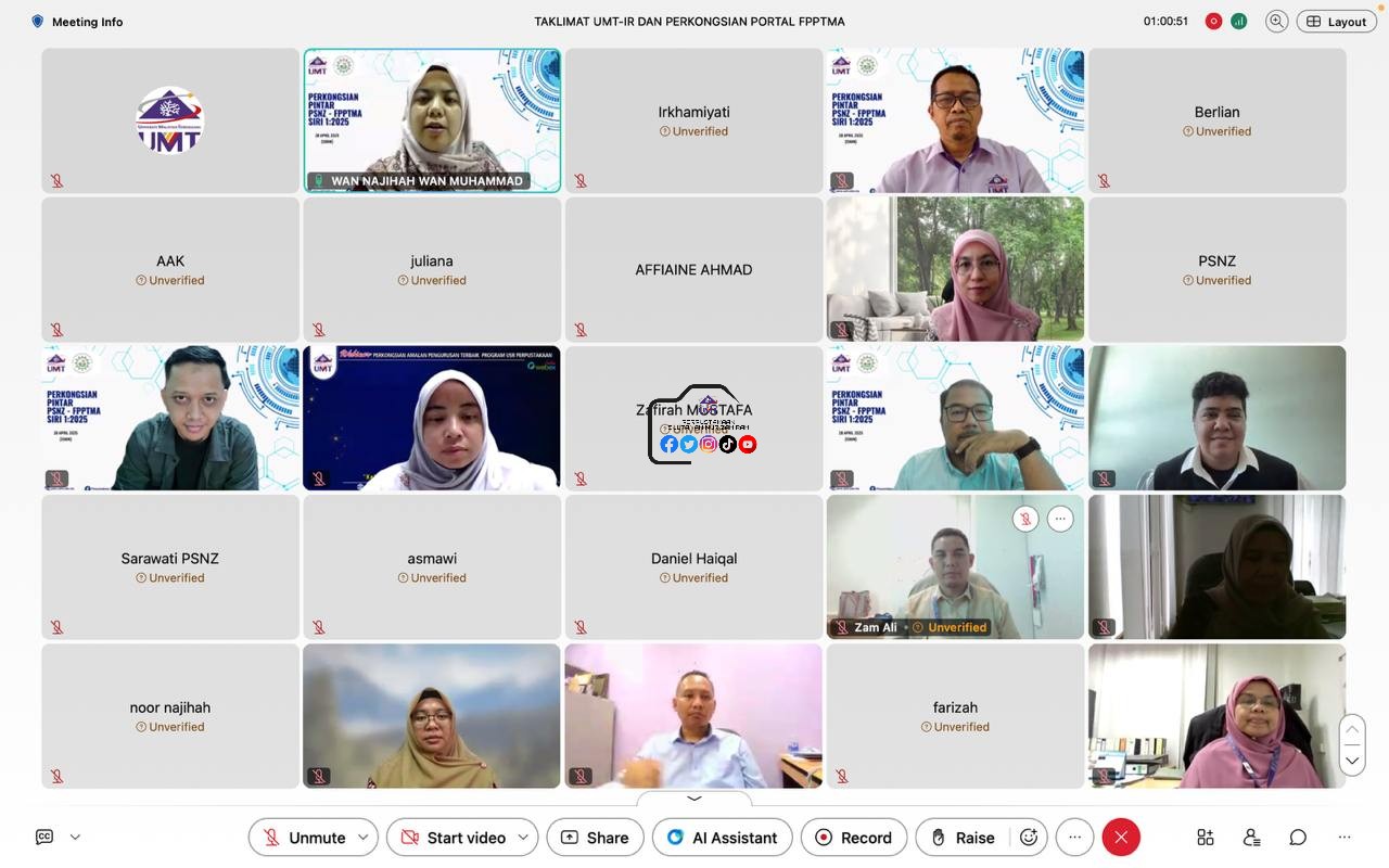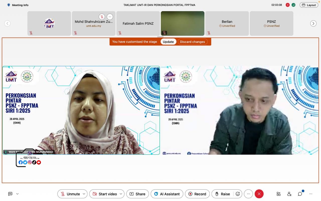Program anjuran Perpustakaan SUltanah Nur Zahirah (UMT) dengan kerjasama Forum Perpustakaan Perguruan Tinggi Muhammadiyah Aisyiyah, Indonesia telah berlangsung pada 28 April 2025 secara atas talian.