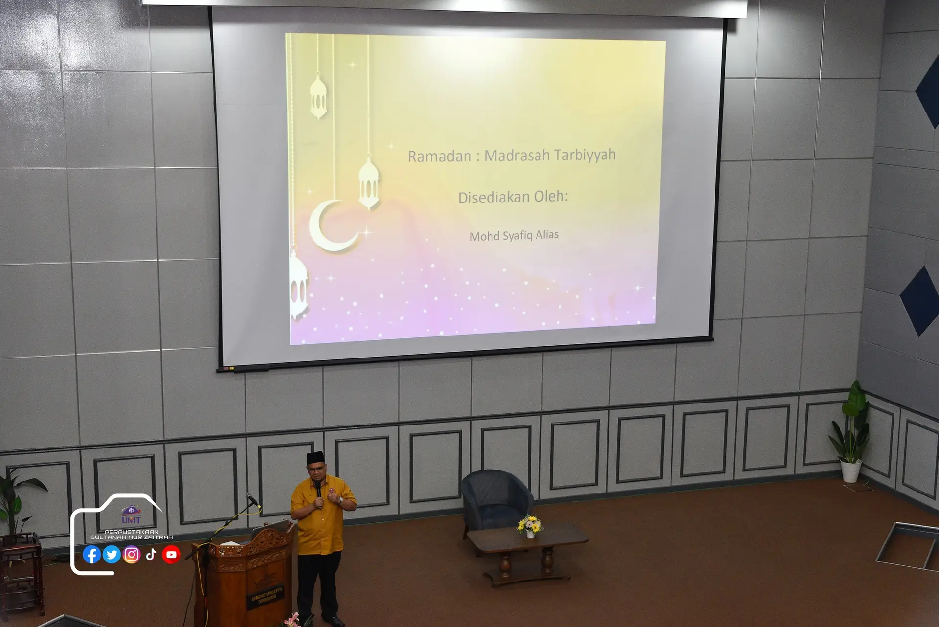 Perpustakaan Sultanah Nur Zahirah telah menganjurkan sebuah program khas sempena kedatangan bulan Ramadan 1447H. Program Lestari Ramadan pada kali ini telah mengundang YBrs. Ustaz Mohd Syafiq bin Alias, Penolong Pegawai Hal Ehwal Islam, Universiti Malaysia Terengganu untuk berkongsi ilmu dengan ceramah bertajuk “Ramadan: Madrasah Tarbiyah”.