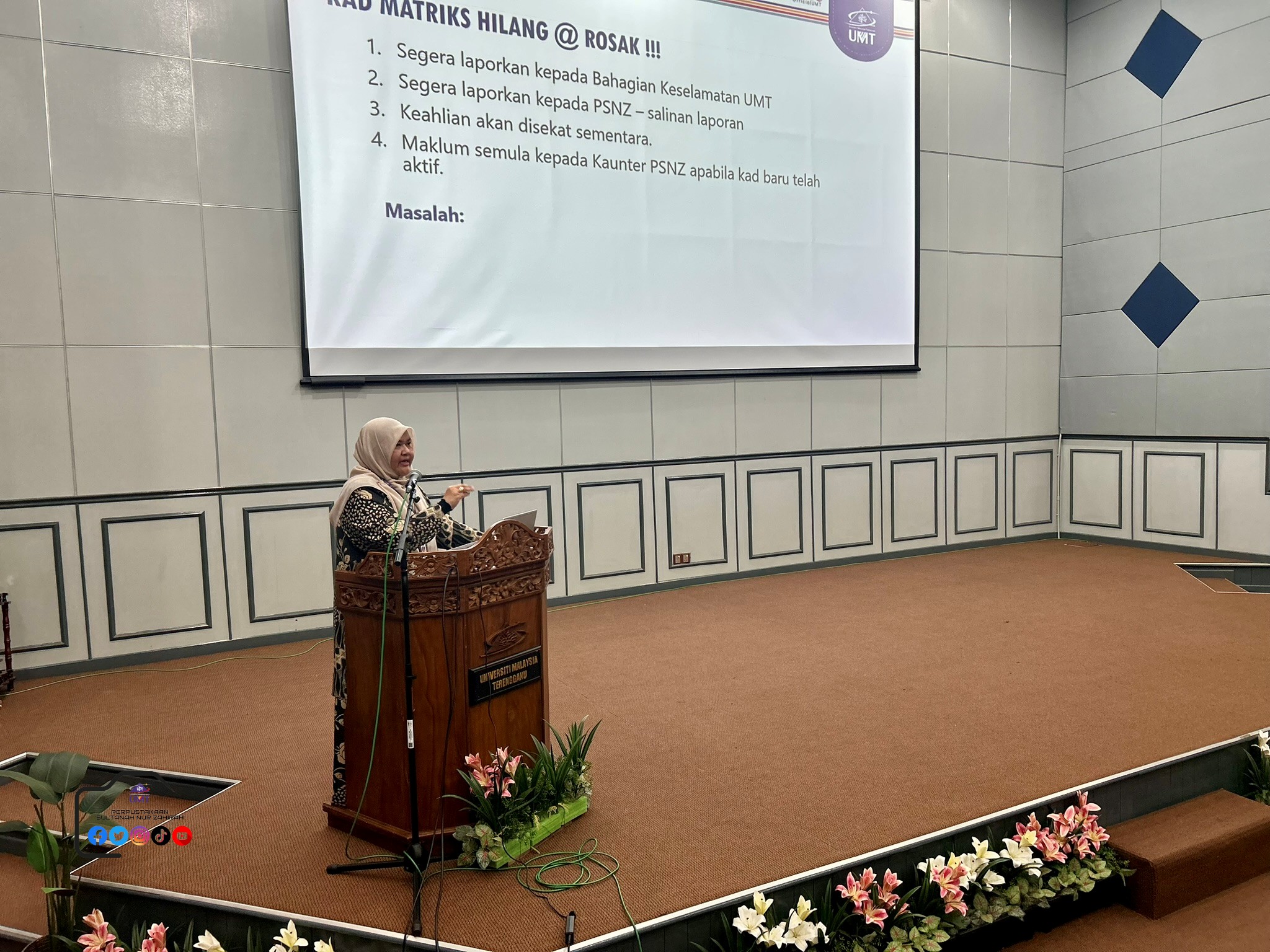Terima kasih diucapkan kepada Cik Sharifah Akmal Syed Abd Rahman, Pustakawan Kanan PSNZ dan Puan Hazlina Ismail, Ketua Pembantu Pustakawan PSNZ di atas taklimat yang telah disampaikan. Semoga apa yang disampaikan dapat menjadi panduan kepada pelajar untuk menggunakan kemudahan dan perkhidmatan yang disediakan oleh PSNZ.