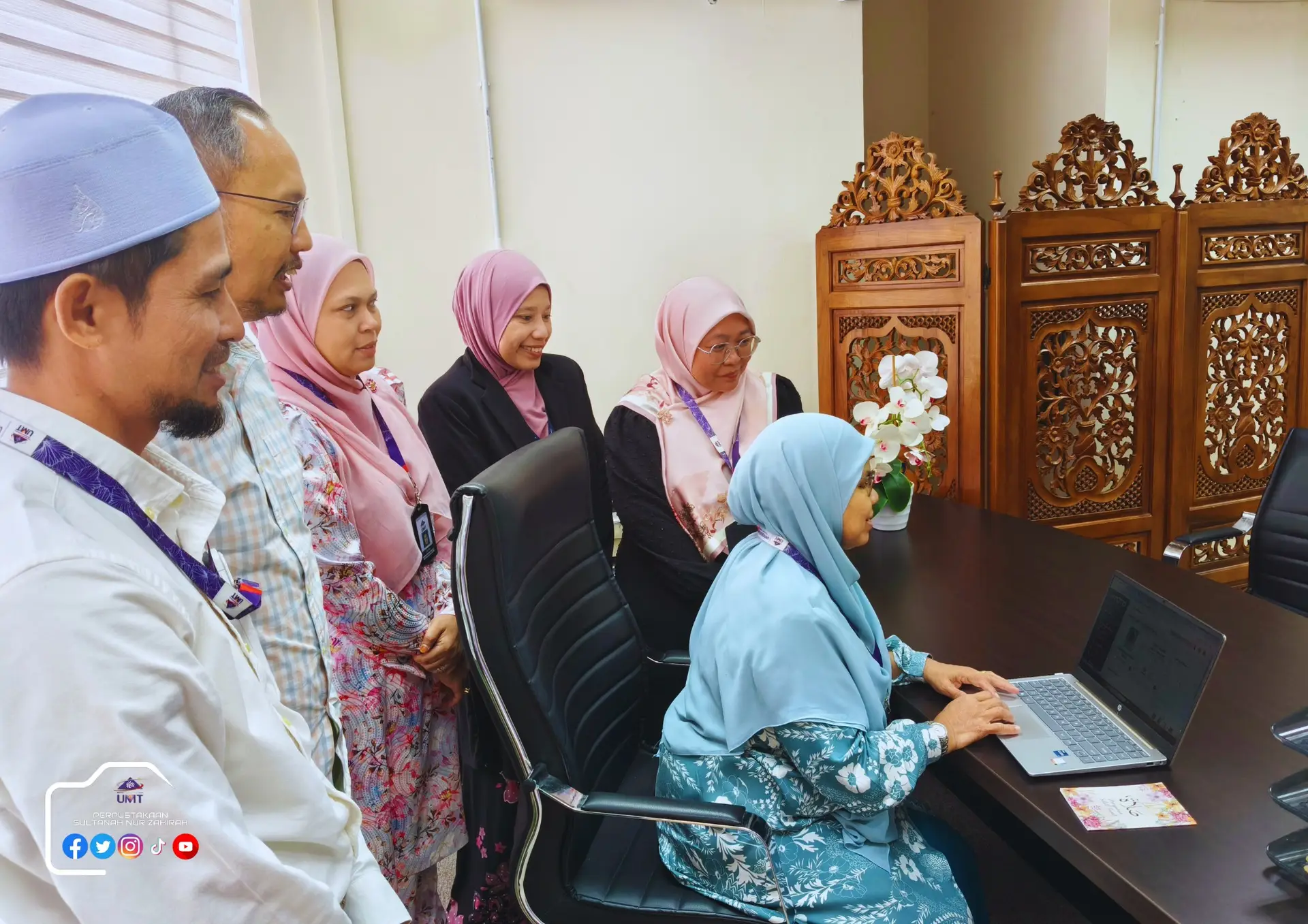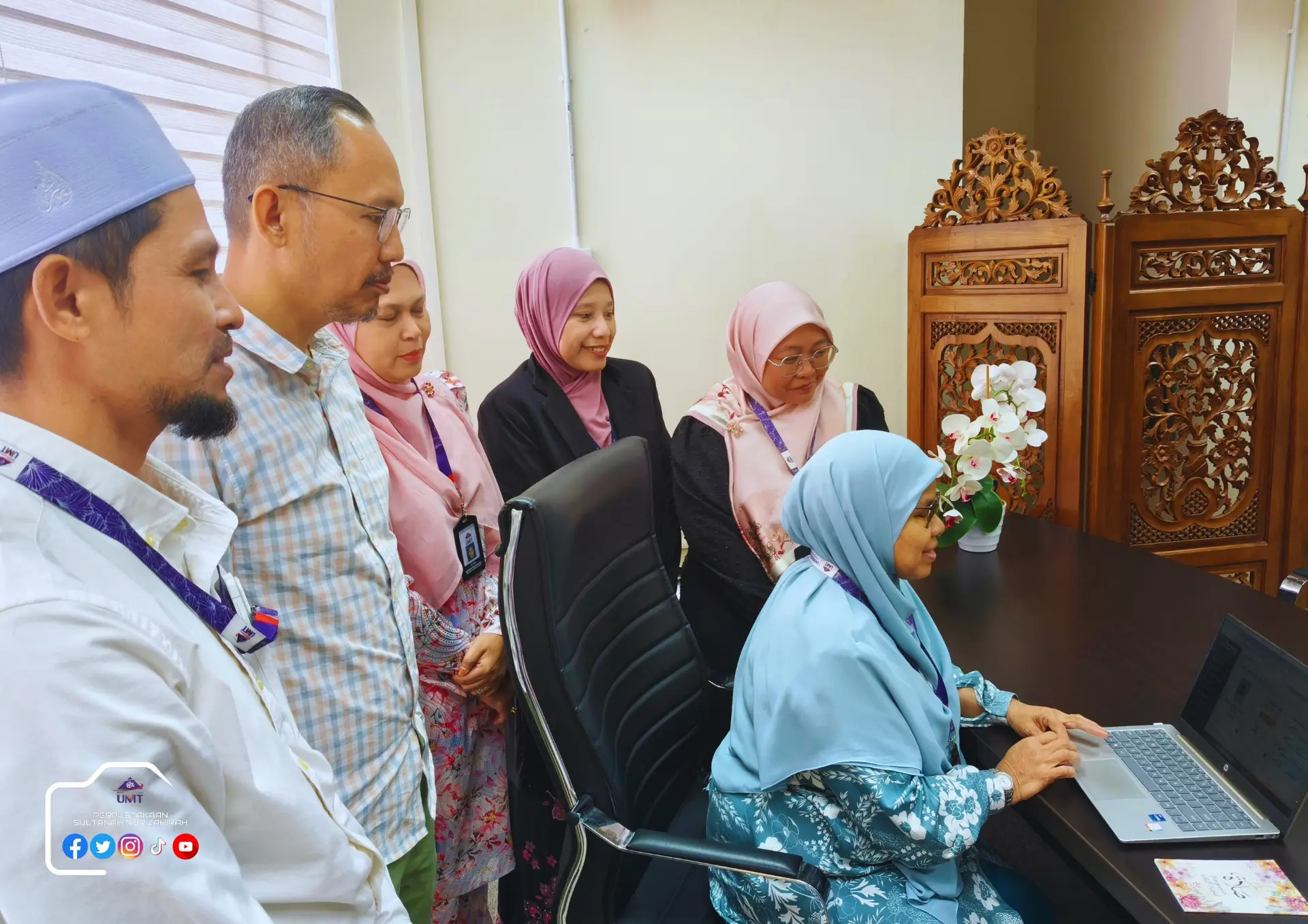 DIARI@PSNZ : 5 APRIL 2026 : Sekitar sesi Clock-In Puan Hajah Fatimah binti Salim di Pejabat Ketua Pustakawan.
