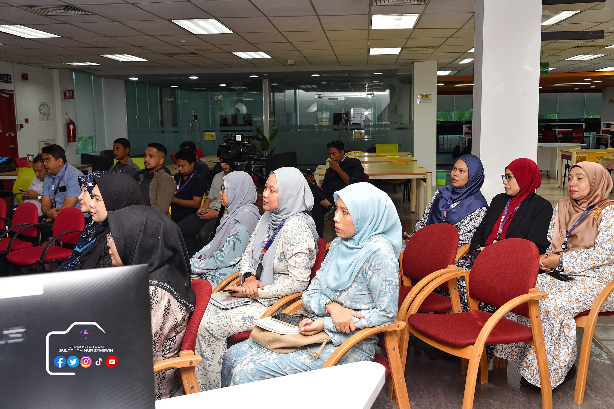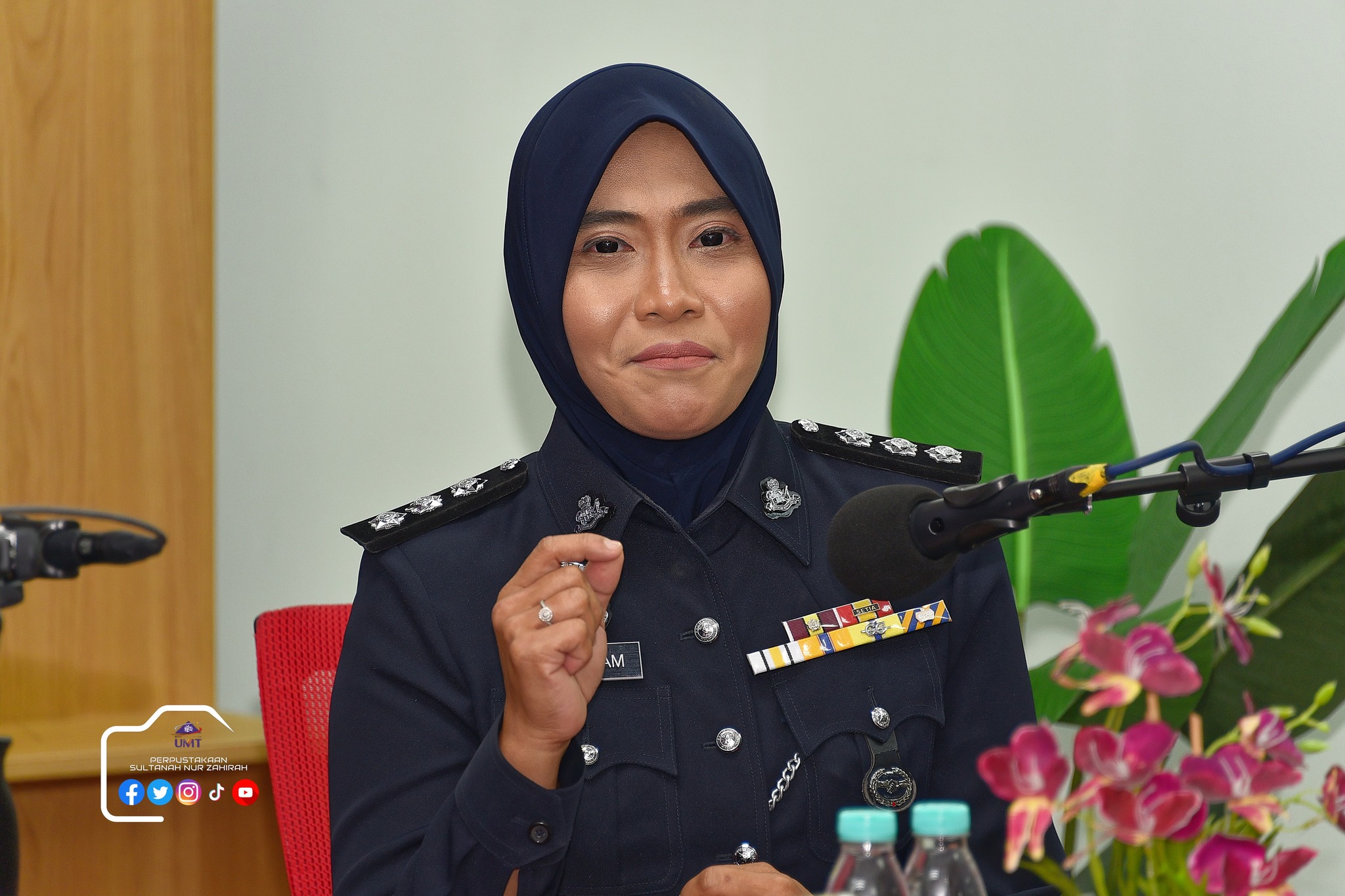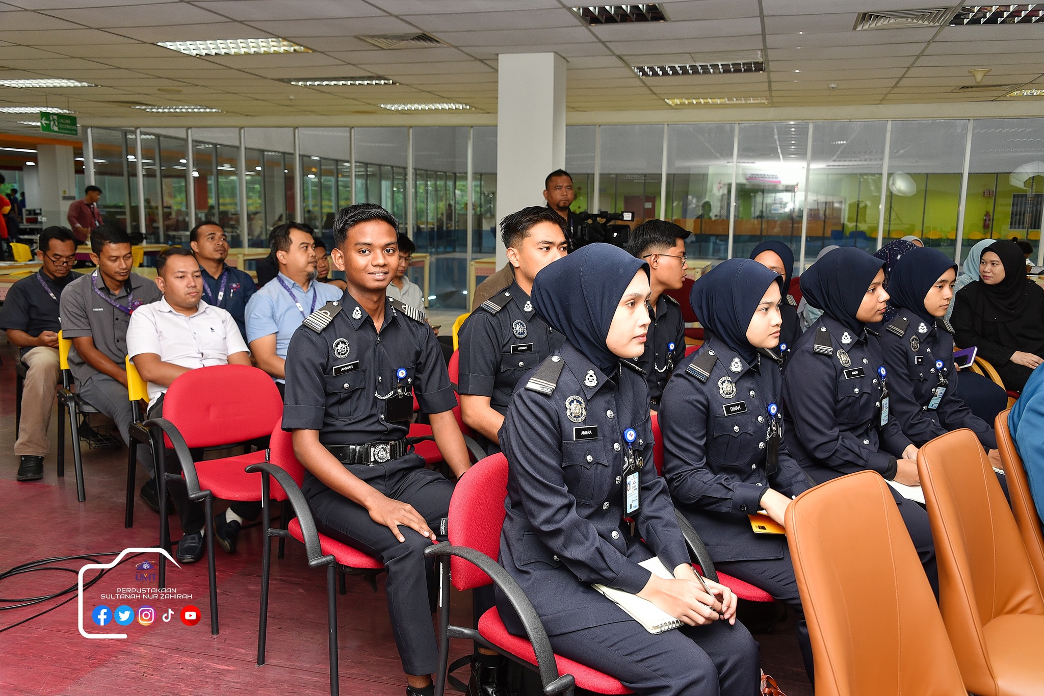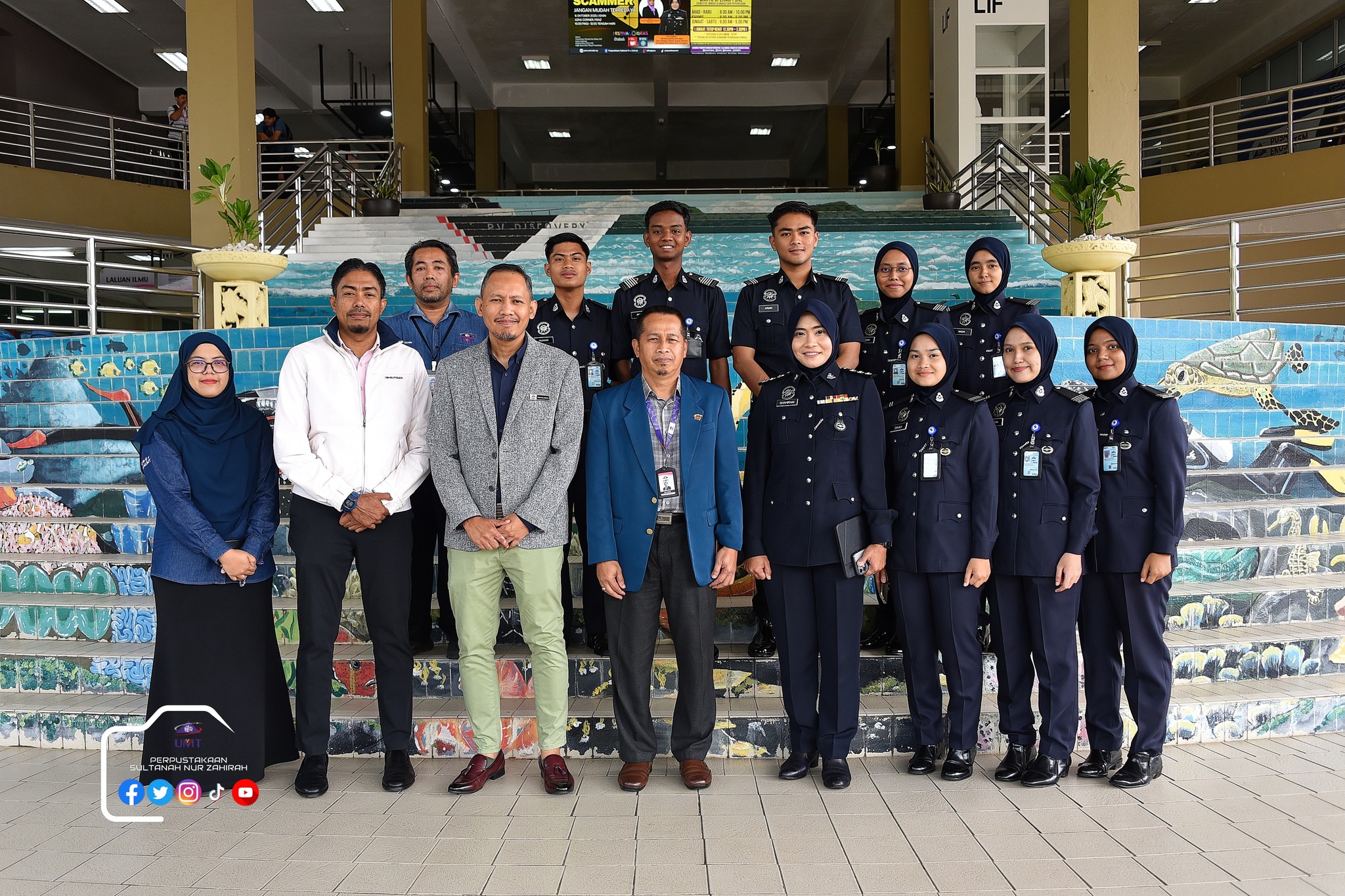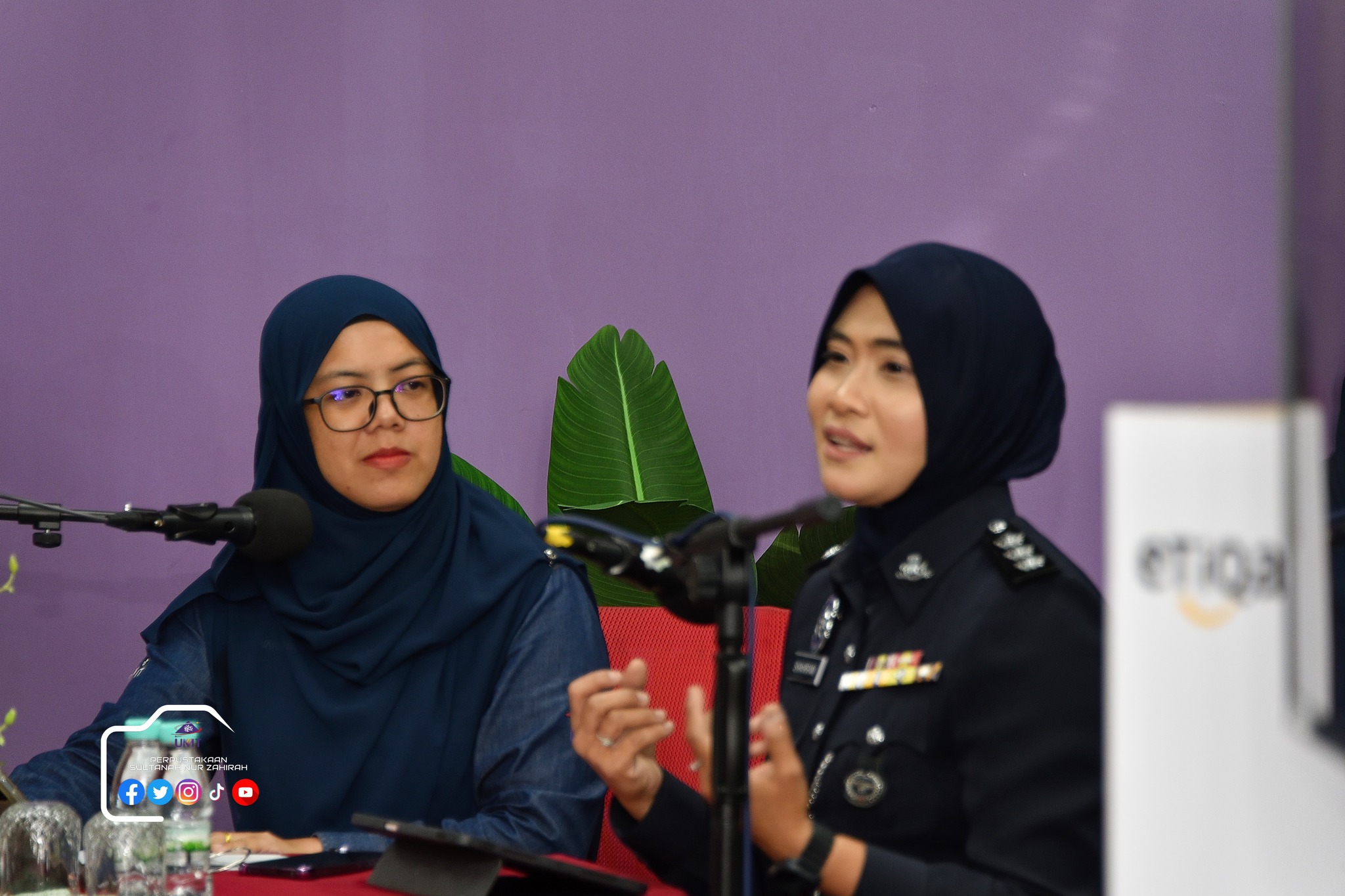 Perpustakaan Sultanah Nur Zahirah (PSNZ), Universiti Malaysia Terengganu dengan Kerjasama AZKA-PPZ MAIWP telah menganjurkan program bual bicara bertajuk “Scammer: Jangan Mudah Terpedaya!” bagi memberi kesedaran kepada warga kampus dan komuniti sekitar tentang ancaman penipuan dalam talian yang semakin membimbangkan. Program kali ini menampilkan ASP Noorshahiram binti Adam daripada Bahagian Siasatan Jenayah Komersil, IPD Kuala Terengganu sebagai panel jemputan, bersama Puan Wan Najihah binti Wan Muhammad, pustakawan PSNZ sebagai moderator.